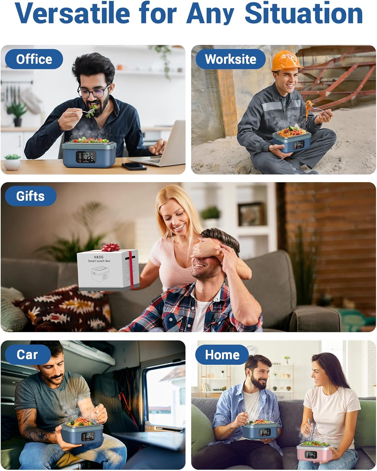 - 【Chaleur longue durée de 2 heures】La boîte à lunch chauffante sans fil VASG est dotée d'une batterie massive de 16 000 mAh, offrant jusqu'à 2 heures de chauffage sans fil, vous assurant de pouvoir déguster un repas chaud à tout moment et n'importe où.